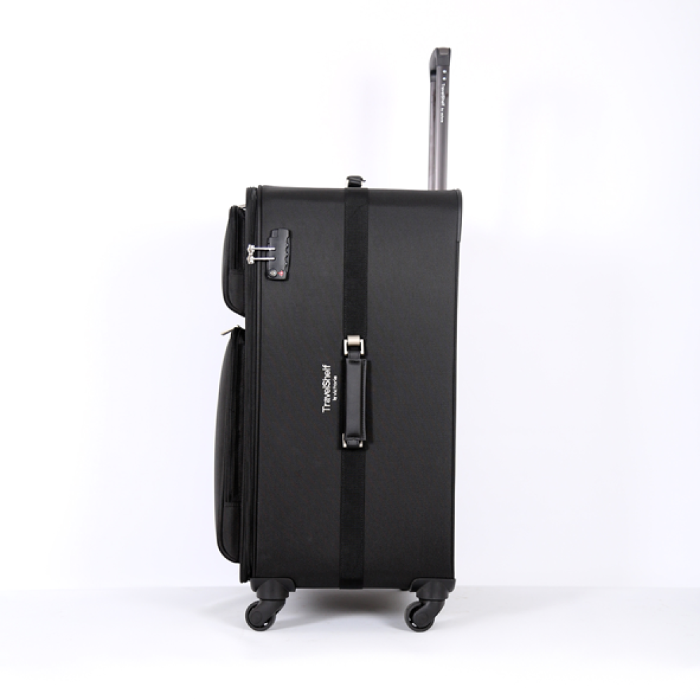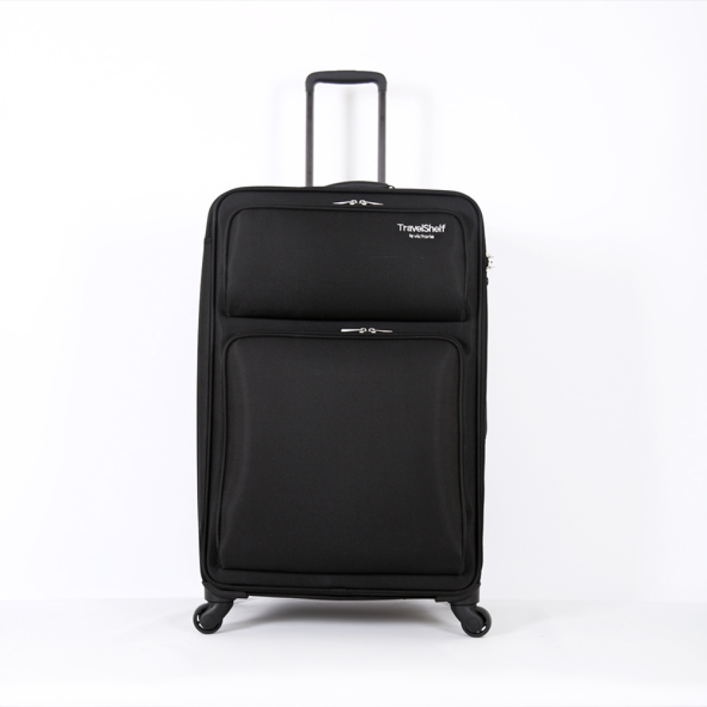 حقيبة سفر بلون أسود أنيق، بتصميم عملي ومقسّم داخليًا بذكاء.