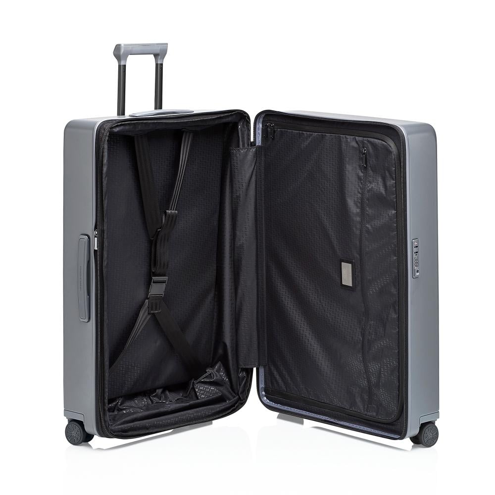 حقيبة سفر رودستر هارد ماركة بورش ديزاين فضية مقاس XL، حقيبة صلبة خفيفة الوزن مصنوعة من البولي كربونيت عالي الجودة، تجمع بين المتانة والجودة. حقيبة سفر تصميم أحادي اللون مستوحى من مجموعة ألوان بورش 911 بتفاصيل بورش الفاخرة. شنطة سفر مصممة بعناية من قبل Studio F. A. Porsche لتلائم الرحلات الطويلة والمهنية.