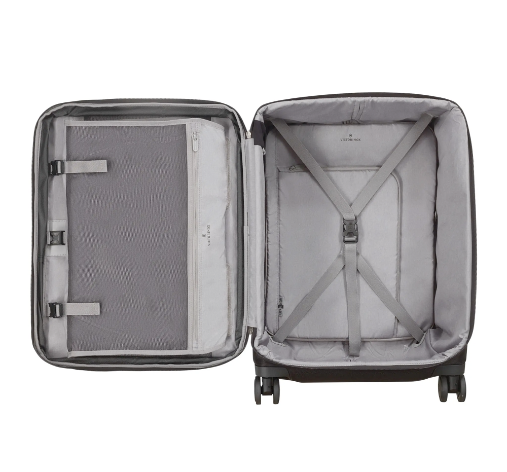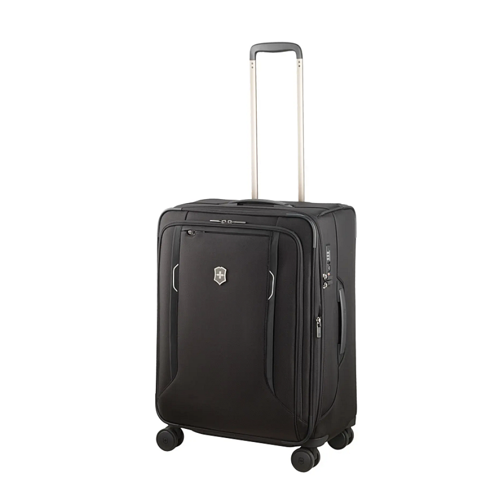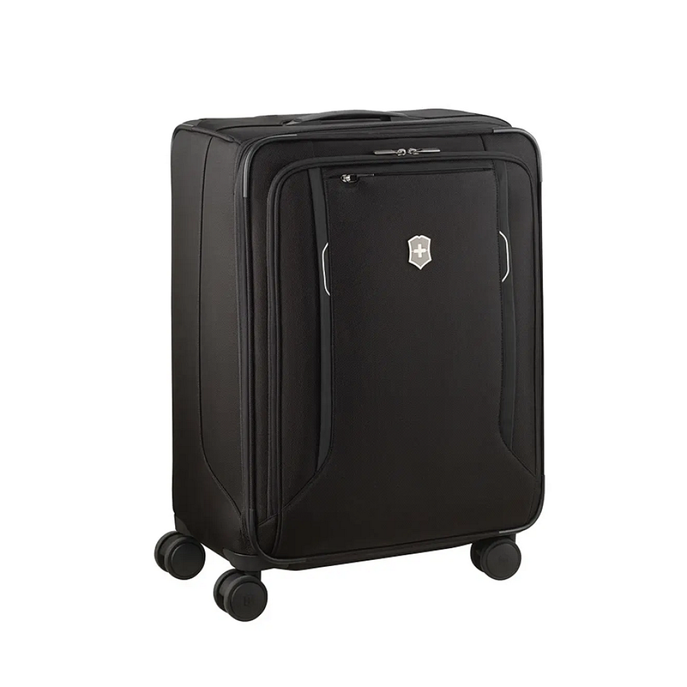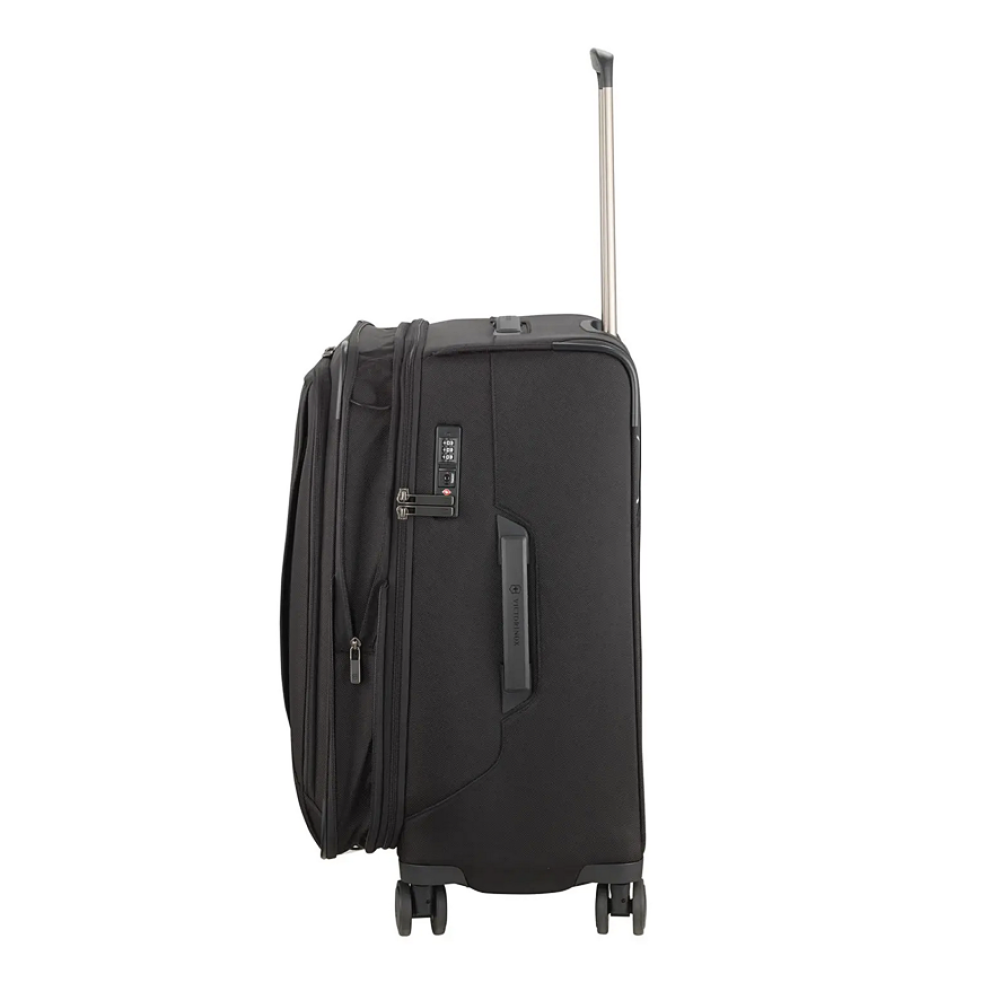Softside مصنوعة من النايلون القوي للغاية المقاوم للتآكل ومزودة بنظام مقبض مصمم هندسيًا سويسريًا