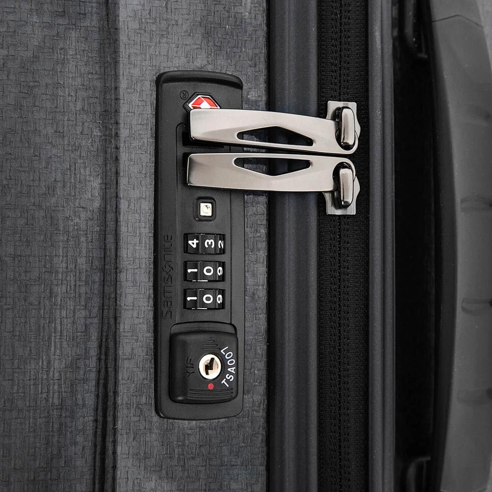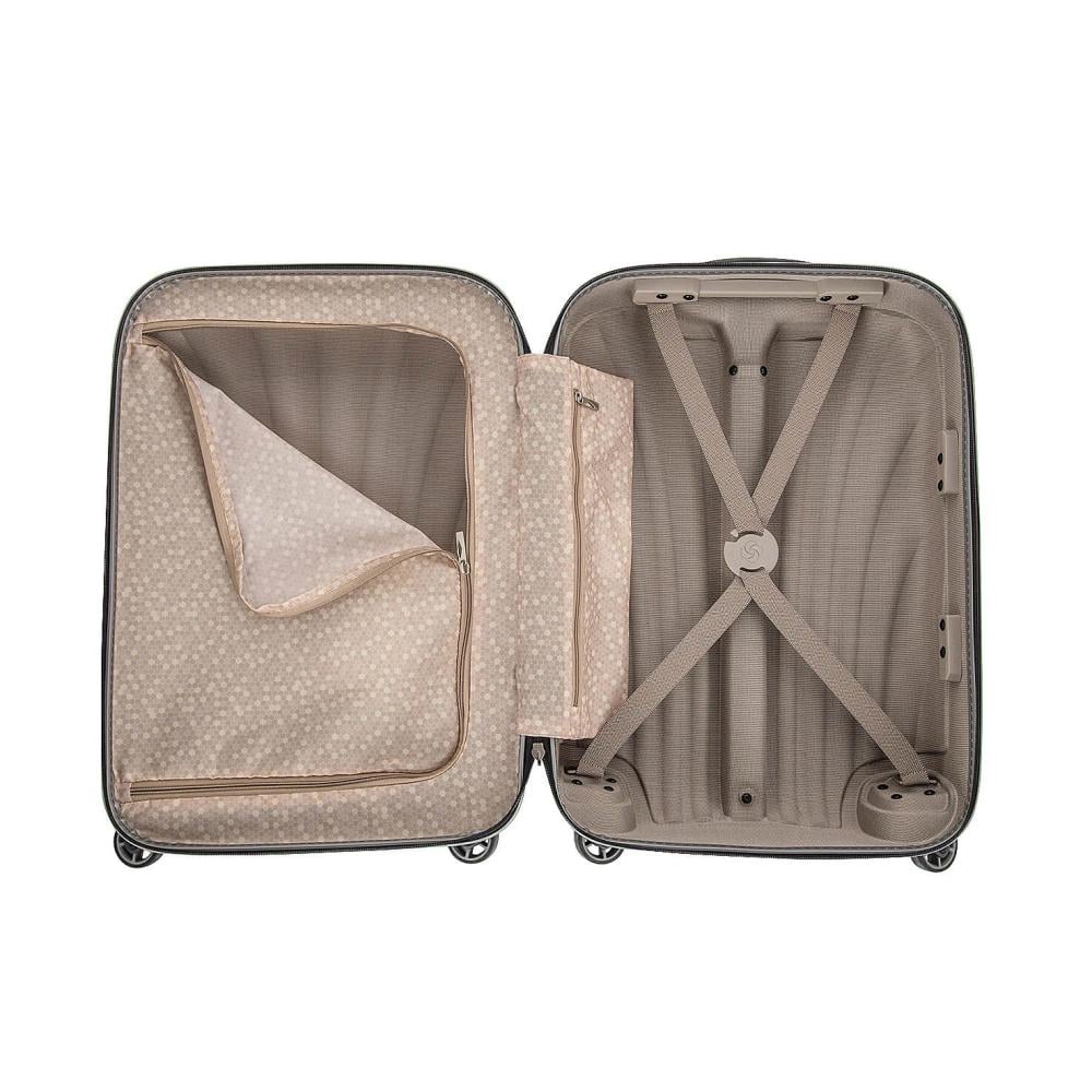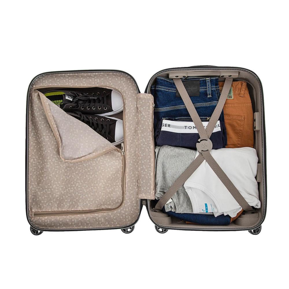 يتم تنظيم خزانة الملابس Samsonite Cosmolite Spinner لمجموعتين، وهي مزدوجة بالكامل. حجرة سفلية تحتوي على زاويتين متعرجتين تسمحان بحفظ الملابس بشكل جيد