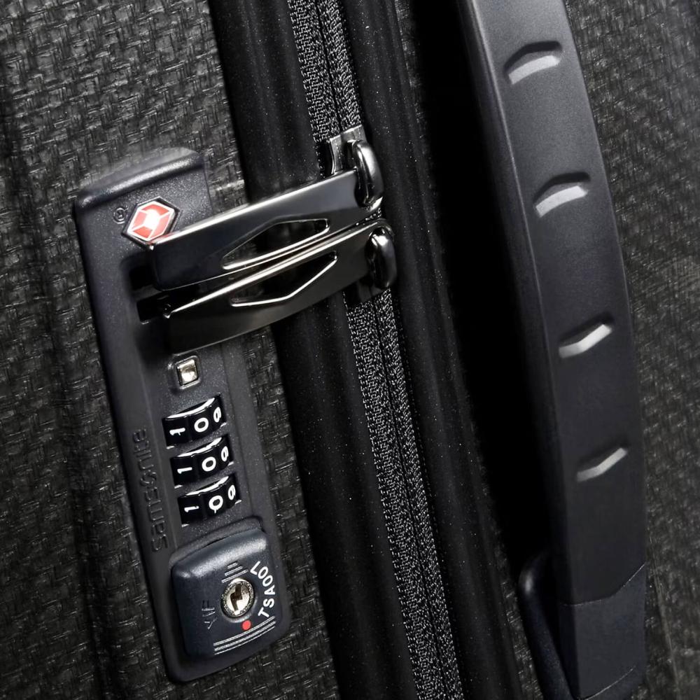 أصبحت حقيبة Samsonite Cosmolite الصلبة أكثر عملية وآمنة حيث أنها تتمتع بقفل غليظ مضاد للانكسار . أيضًا مجهزة برمز TSA الآمن