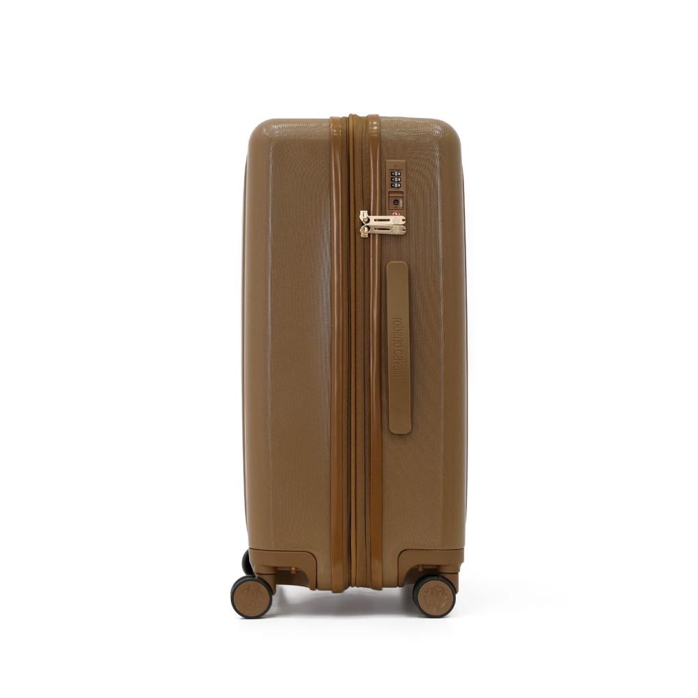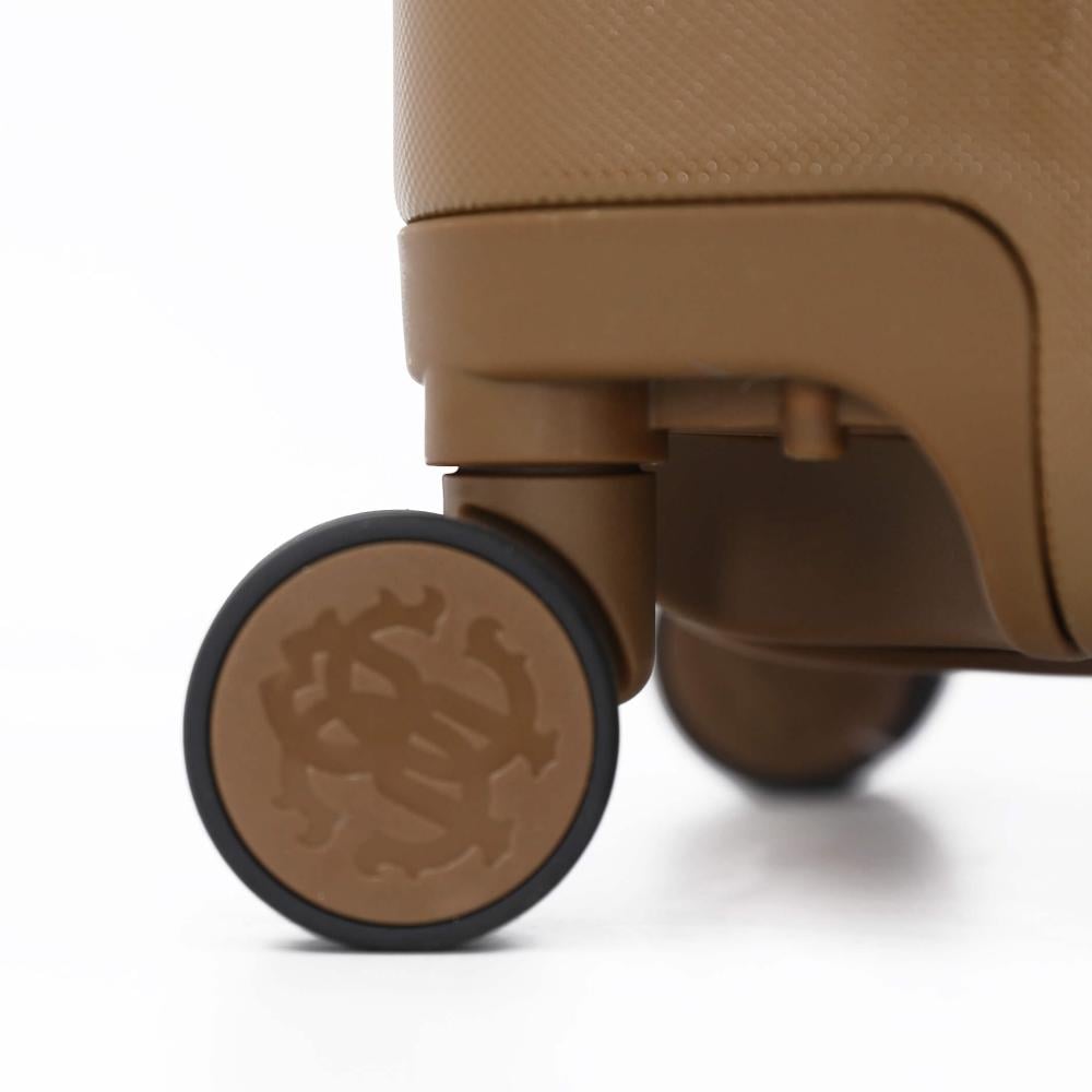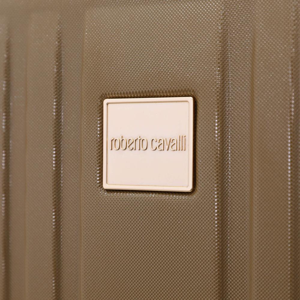 طقم حقائب بنية اللون بخطوط طولية ماركة روبيرتو كفالي، شنط مريحة للسفر تتسع لكل أغراضك الهامة وسهلة الحمل والتنقل، وأيضاً مقاومة للكسر والصدمات.