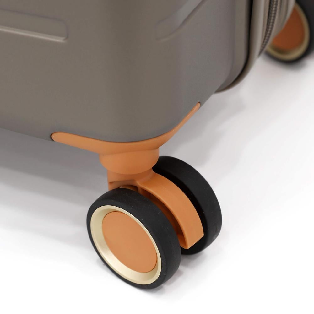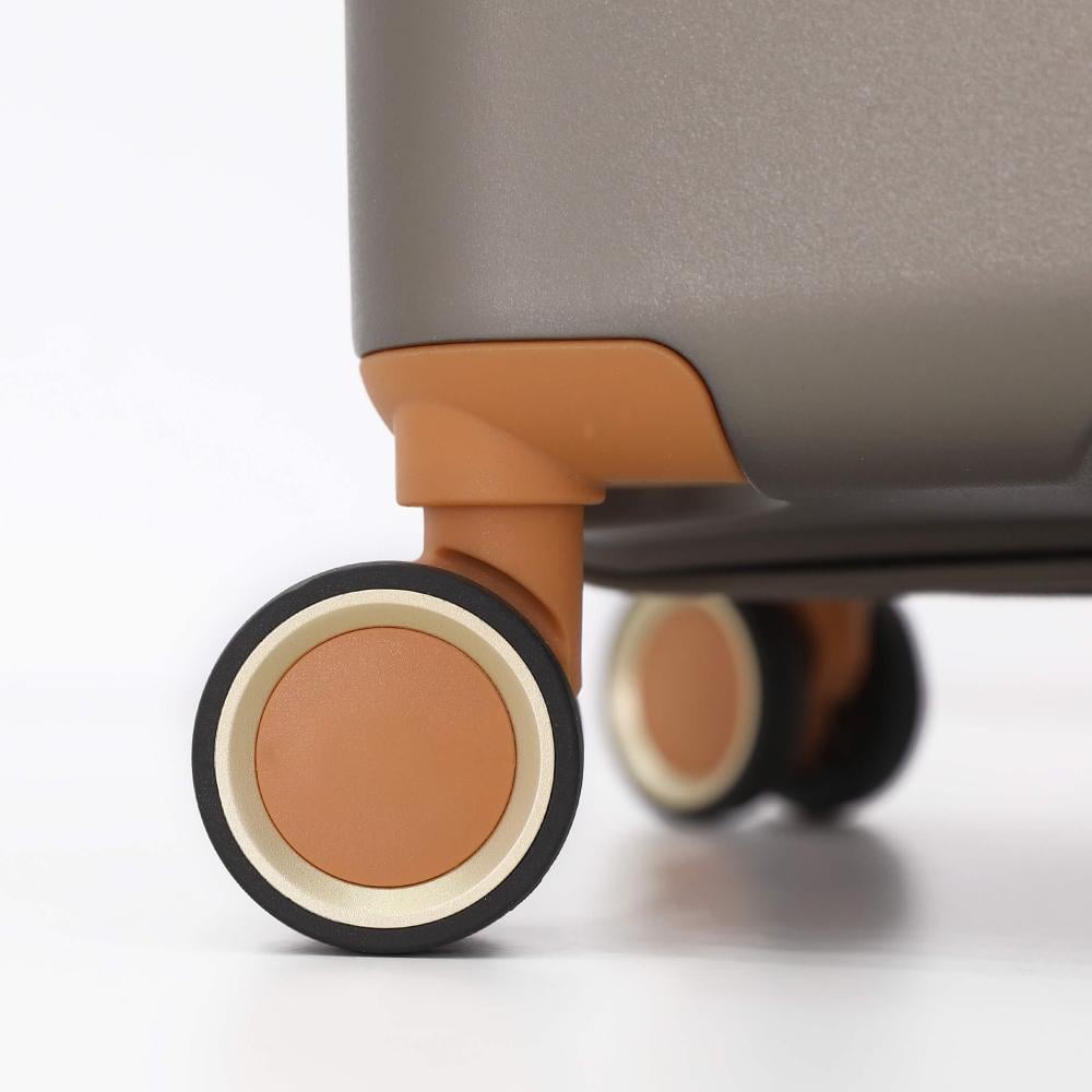 أربع عجلات قوية مزدوجة تنزلق بسلاسة وتدور في جميع الاتجاهات حتى على الأسطح غير المستوية.