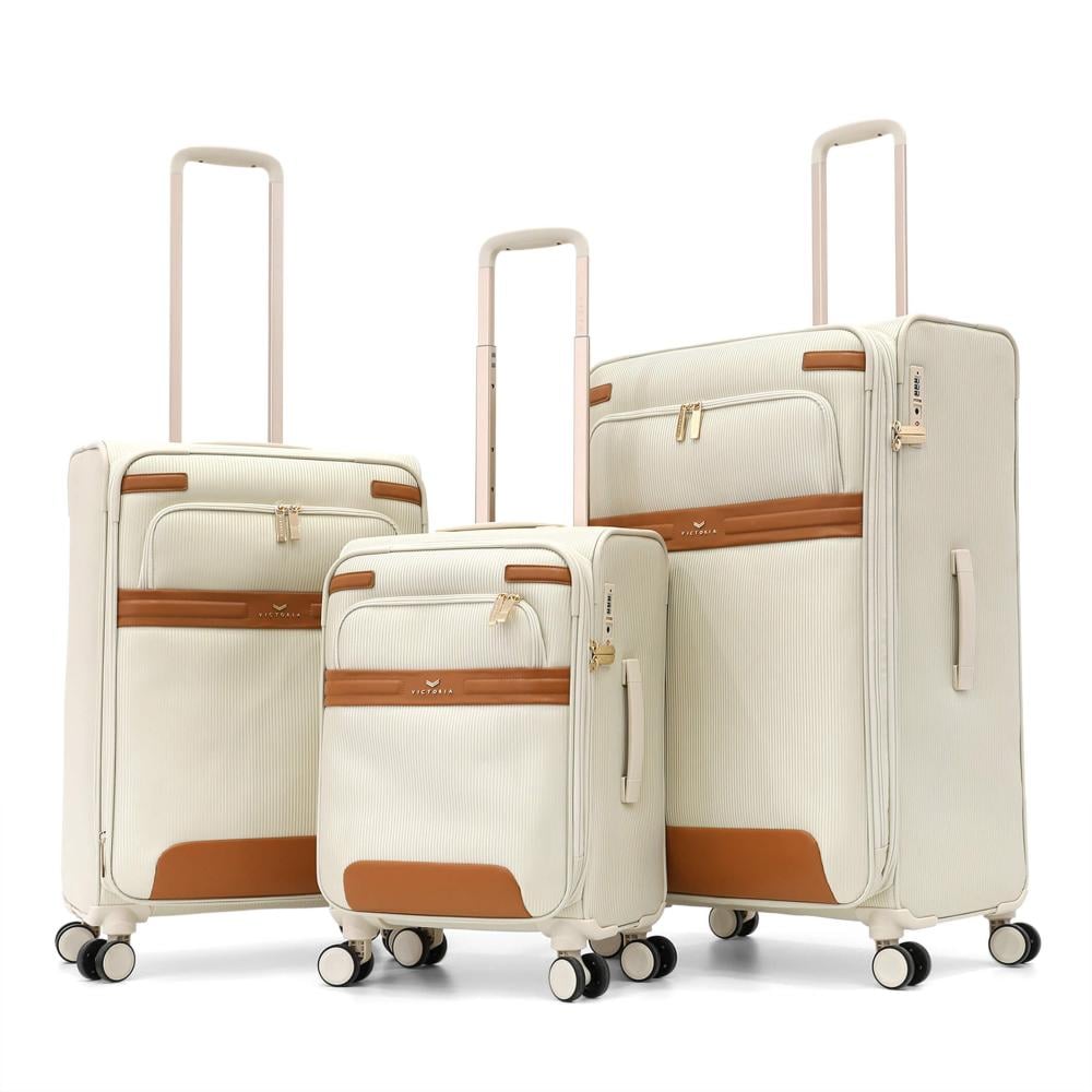 طقم حقائب سفر ماركة فيكتوريا لون سكري من متجر الشماسي، مصنوع من قماش متين يتحمل الوزن والاستخدام الشاق.