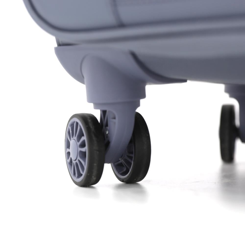 اربع عجلات قوية تتحرك بحرية وانسيابية تامة في جميع الاتجاهات على الاسطح المستوية والمتعرجة.