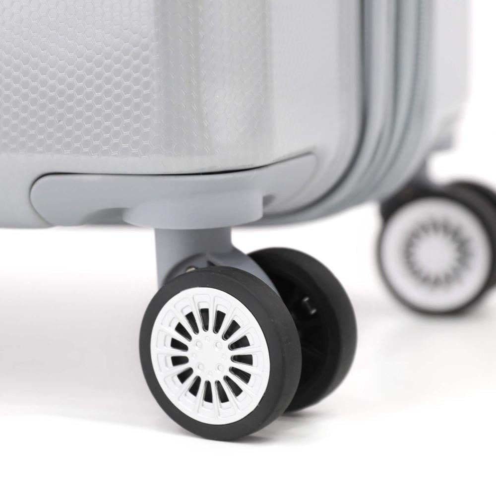 اربع عجلات قوية تتحرك بحرية وانسيابية تامة في جميع الاتجاهات على الاسطح المستوية والمتعرجة.