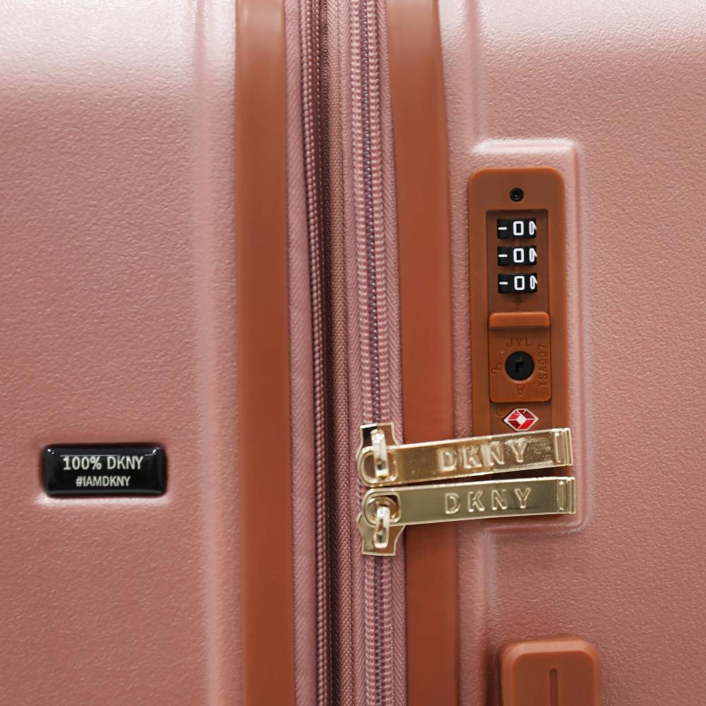 طقم حقائب السفر من ماركة دكني DKNY المصنوع من البولي كربونات يتميز بمزيج من الأناقة والعملية، حيث توفر مادة البولي كربونات صلابة استثنائية لحماية الأغراض الشخصية من الصدمات والخدوش مع الحفاظ على خفة الوزن. يأتي الطقم بتصميم انسيابي تضيف لمسة فاخرة إلى مظهر الحقائب.