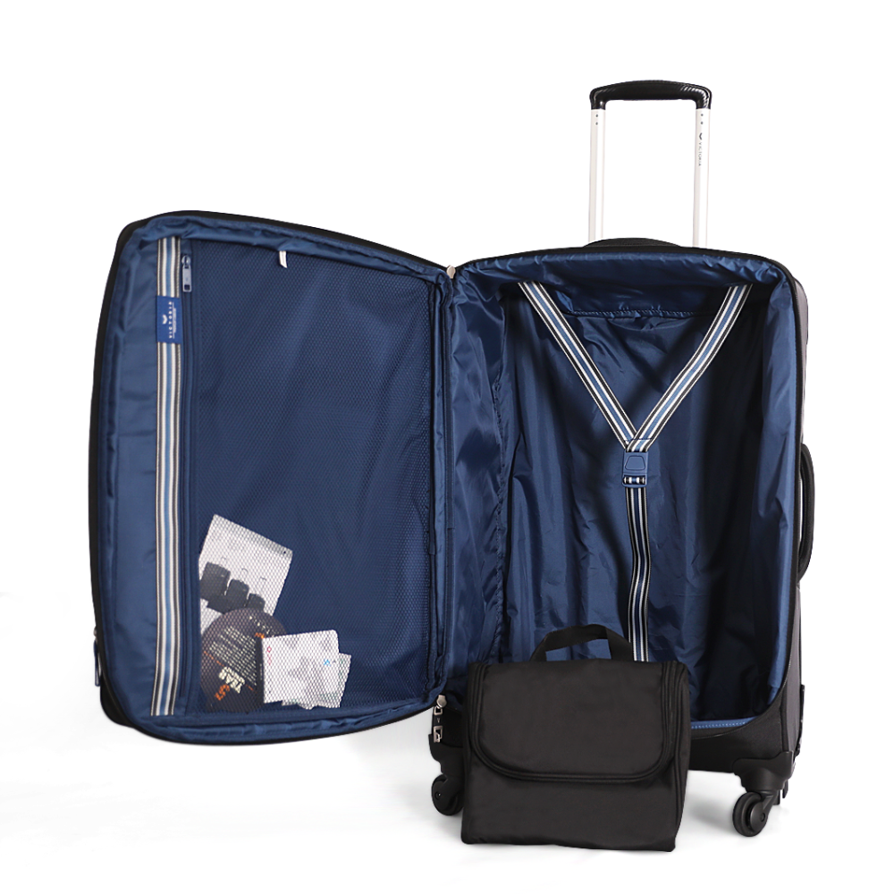 تقسيم داخلي مع وجود احزمة لتثبيت الأغراض داخل الحقيبة بالإضافة الى جيوب داخلية