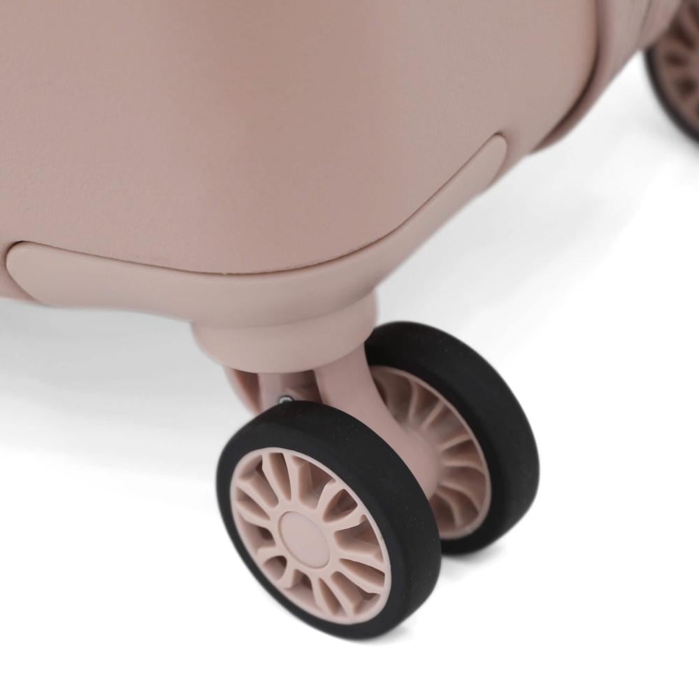 Four distinctive wheels move freely and smoothly in all directions on flat and curved surfaces.