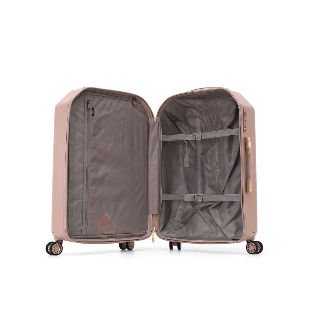 It consists of three different sizes: large, medium, airplane-sized bag, and makeup bag.