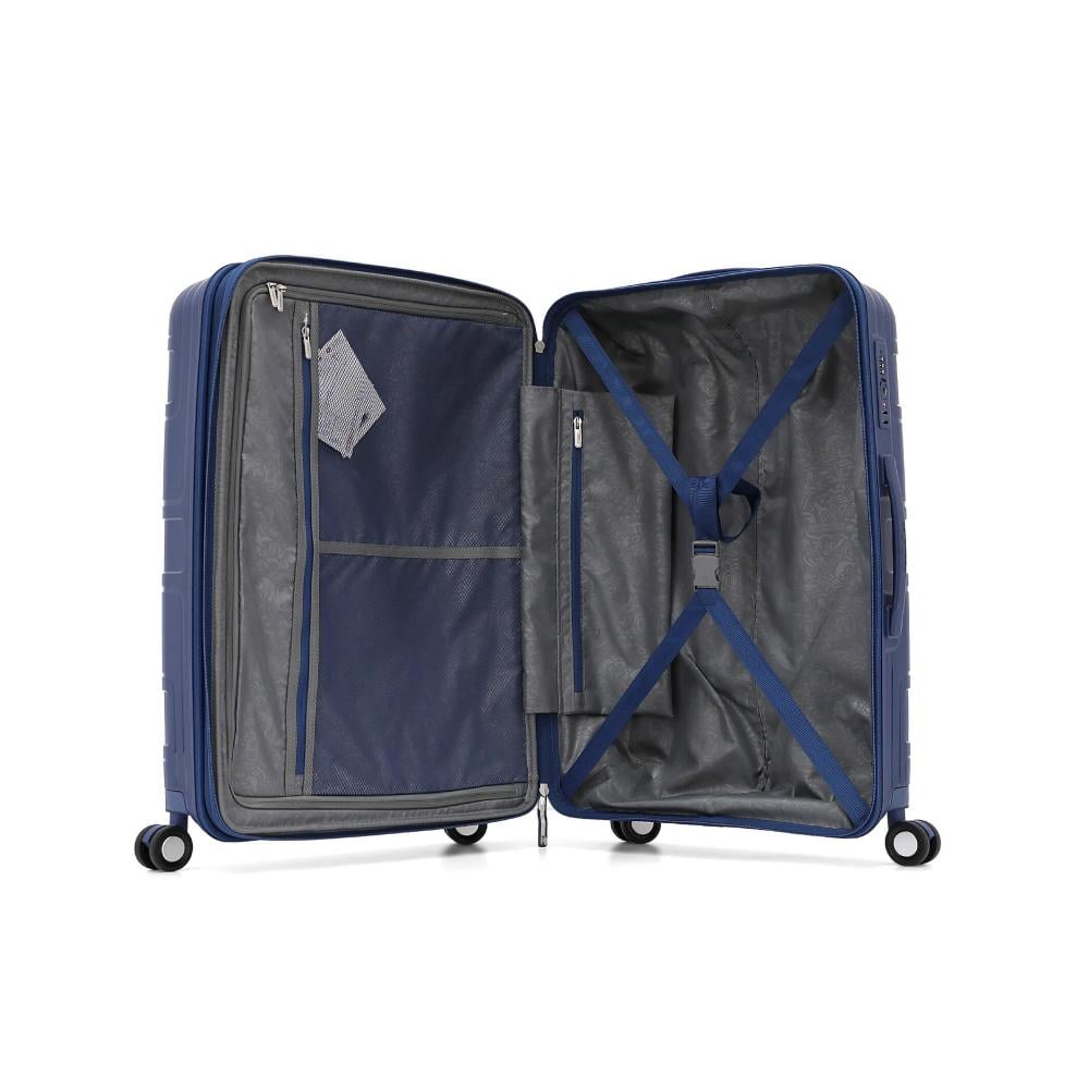 The American Tourister luggage set is a great choice for travelers seeking style and durability. The set includes three pieces of different sizes (large, medium, and small) to meet various travel needs.