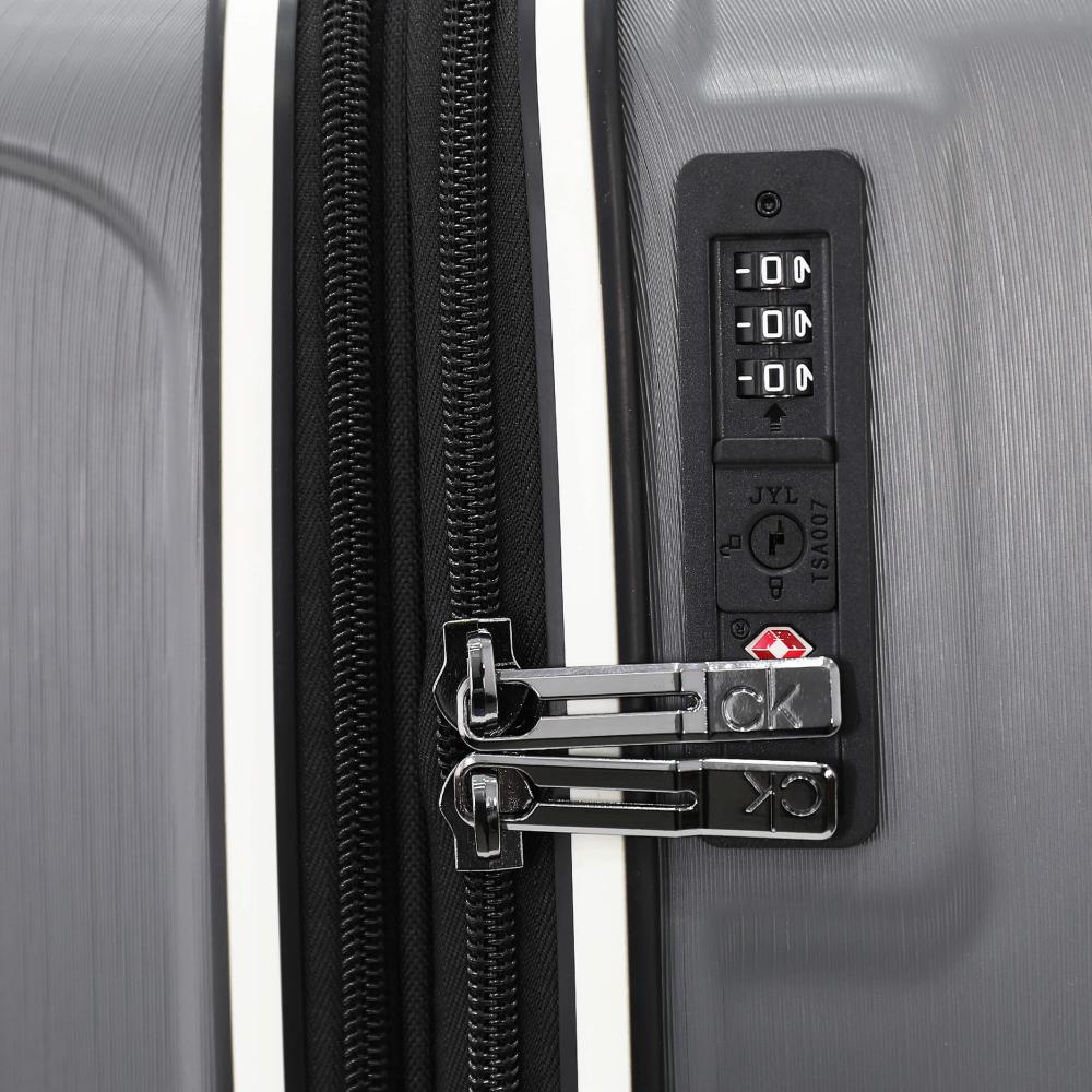 This set is crafted from premium polycarbonate, known for its durability, lightweight nature, and impact resistance—ensuring the safety of your belongings in all conditions. From the first glance, you'll notice its sleek, contemporary design, reflecting the elegance of the Calvin Klein brand. Its smooth surface allows for effortless carrying, whether navigating through airports or city streets.