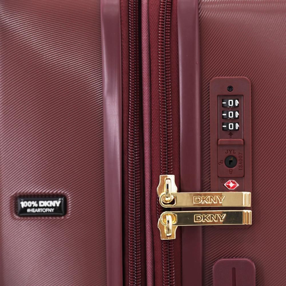 This burgundy DKNY luggage set comes in three practical sizes: large, medium, and small, to meet all your travel needs, whether your trip is short or long. DKNY bags are made of high-quality polycarbonate, which combines lightness and durability.