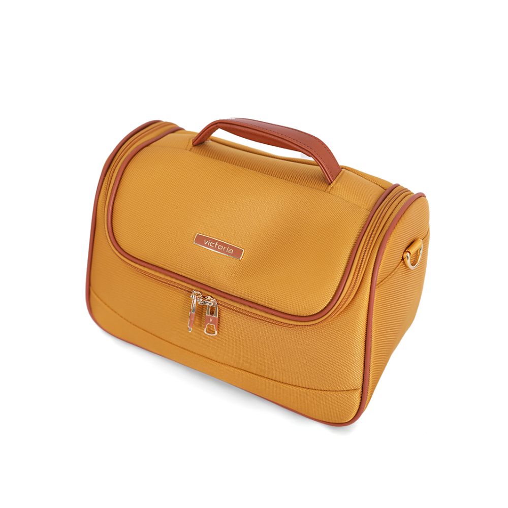 It consists of five different pieces: large, medium, and small, as well as a shoulder bag and a makeup bag.