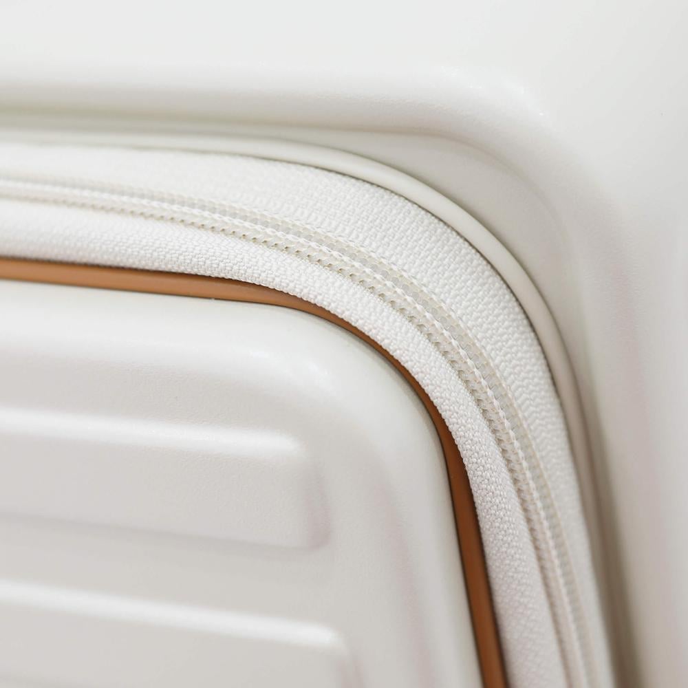 The Victoria small trolley suitcase in white with elegant brown details is a convenient cabin bag if you're looking for a suitcase that can hold all your essentials . It's easy to carry and transport, and is also shatter- and shock-resistant.