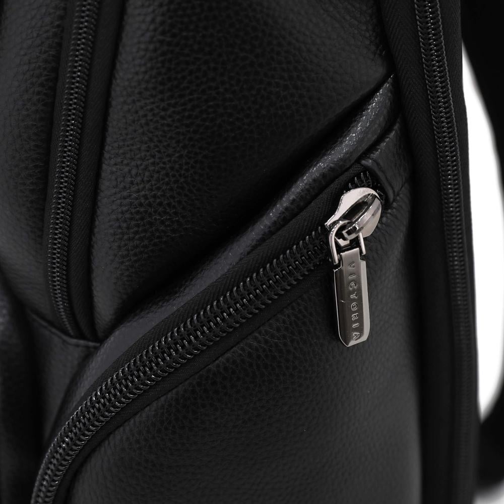 The smart Victoria backpack is a stylish black bag with a simple, modern design featuring the Victoria brand logo on the front. This backpack is perfect for everyday use and short trips.